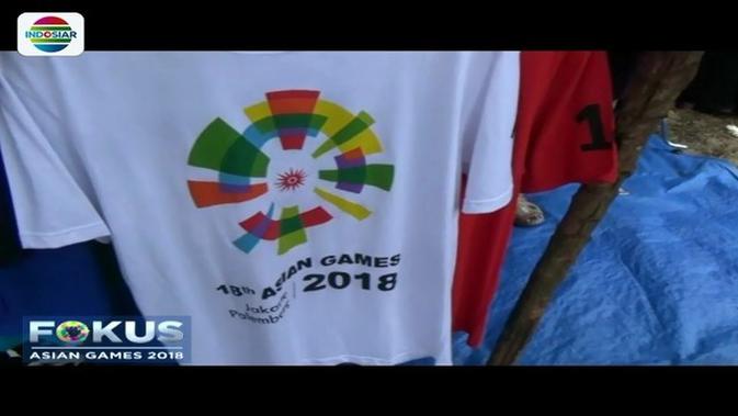Beragam pernak-pernik Asian Games 2018 di tempat ini dijual dengan harga relatif murah. Dari sekian banyak produk yang dijual, kaos berlogo Asian Games lah yang paling banyak diburu pengunjung.